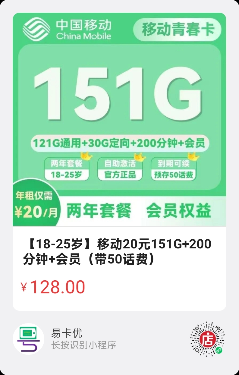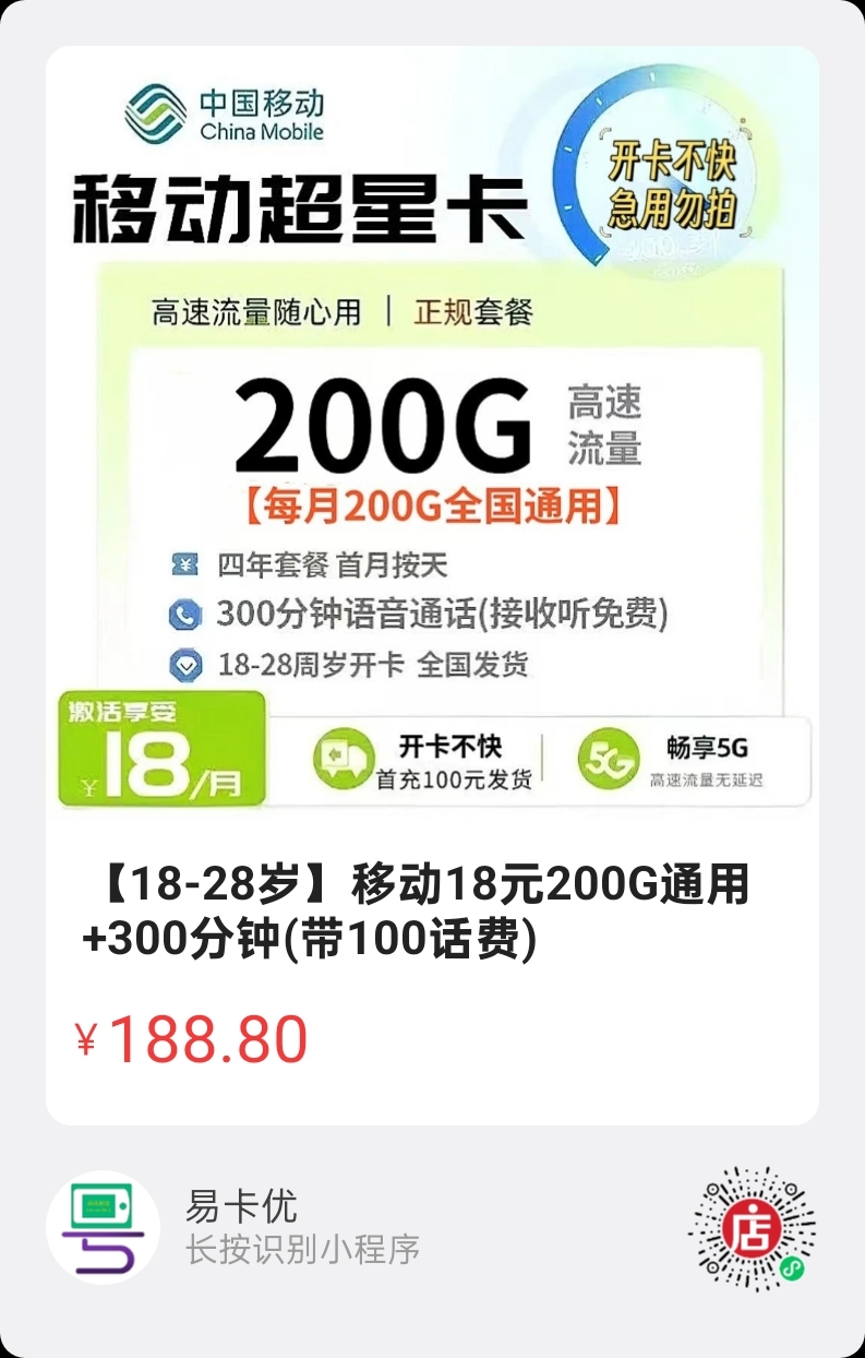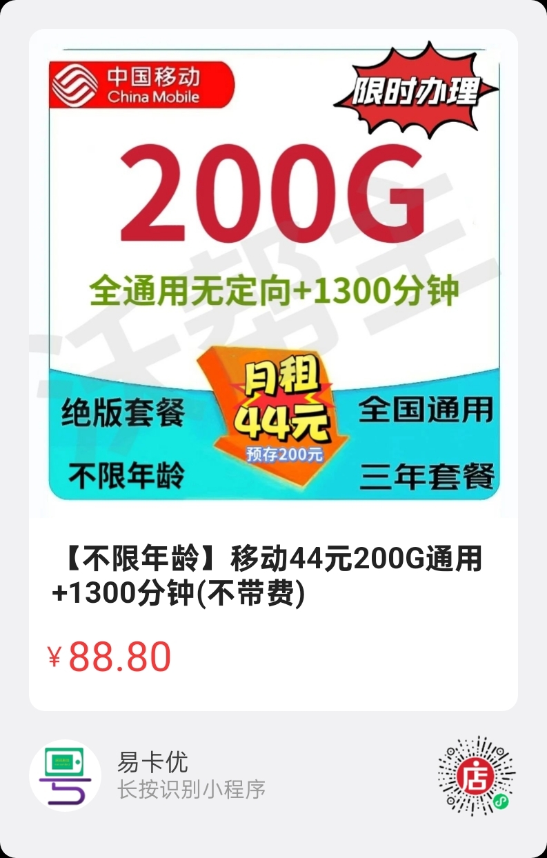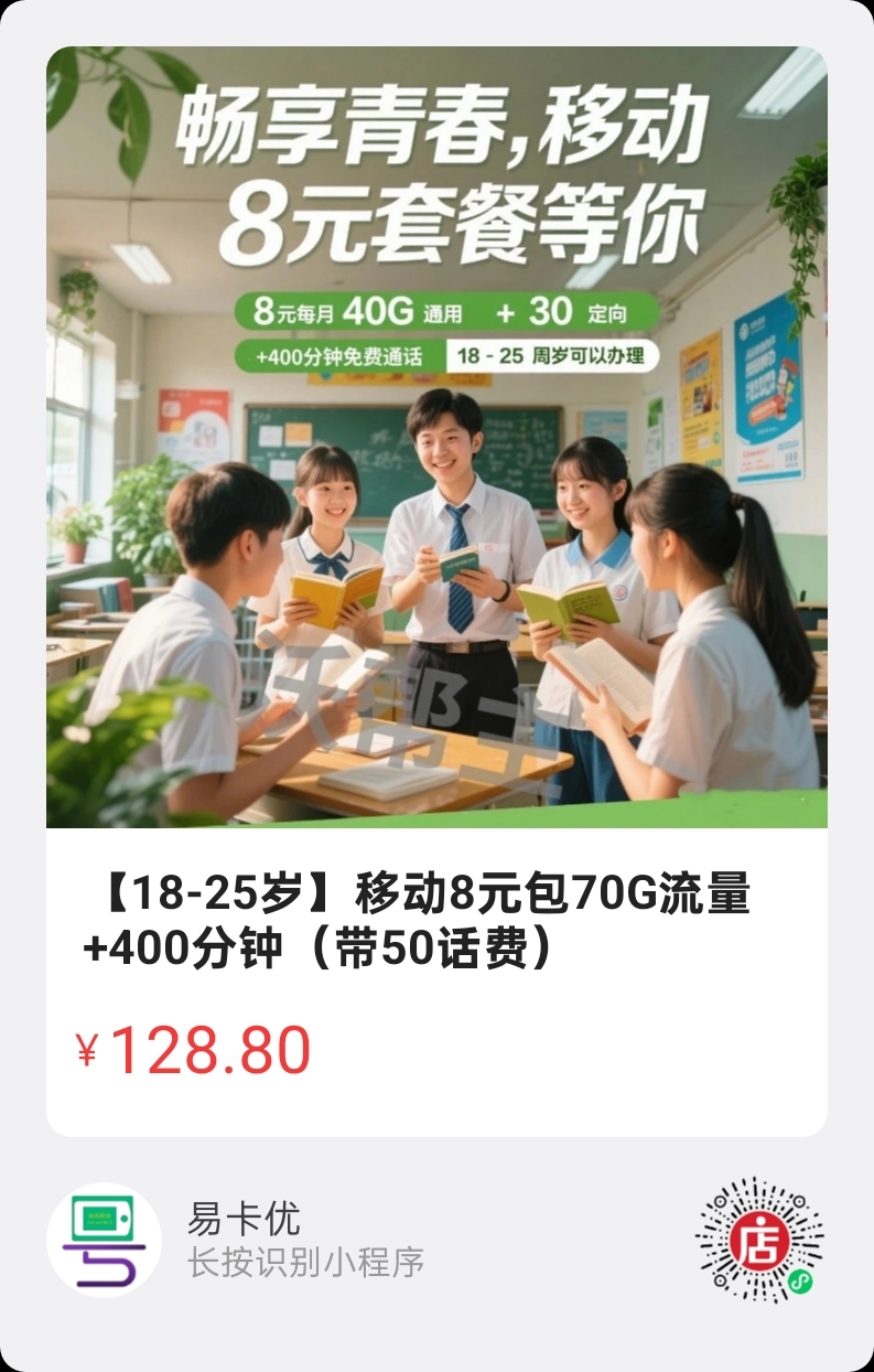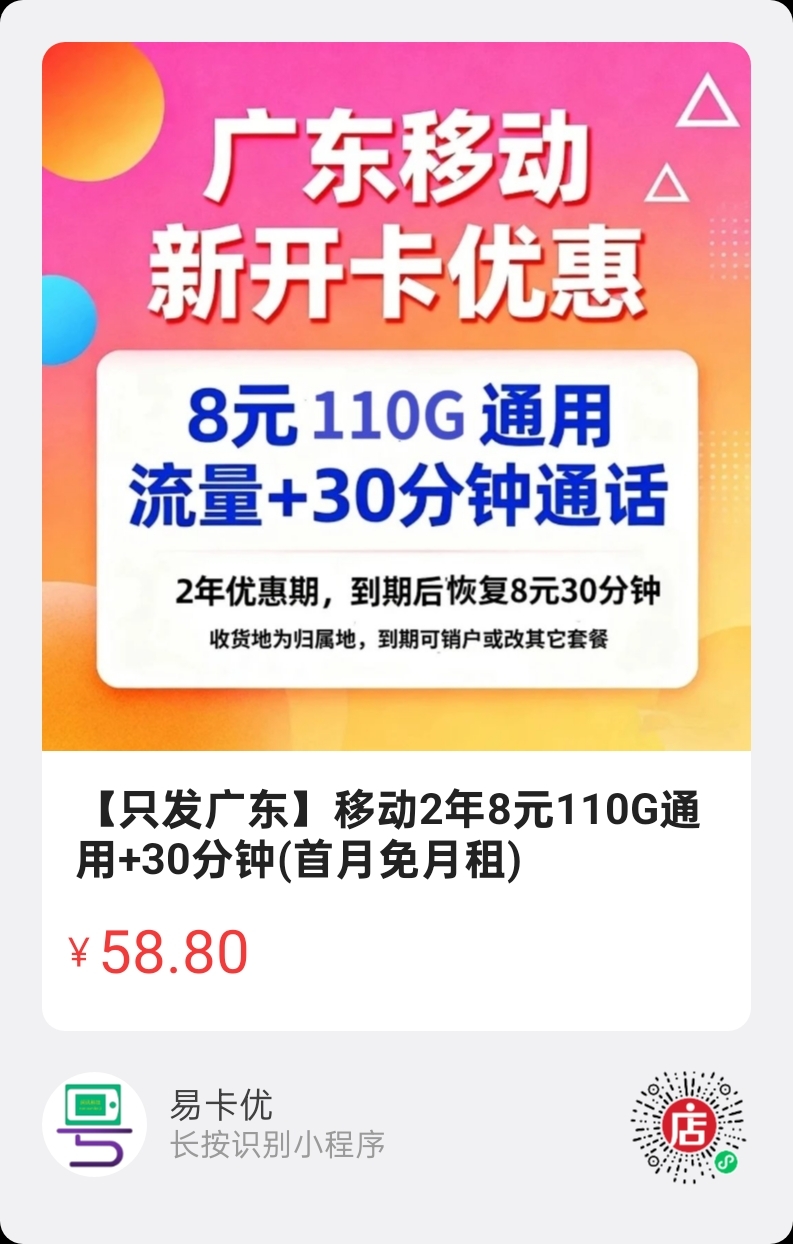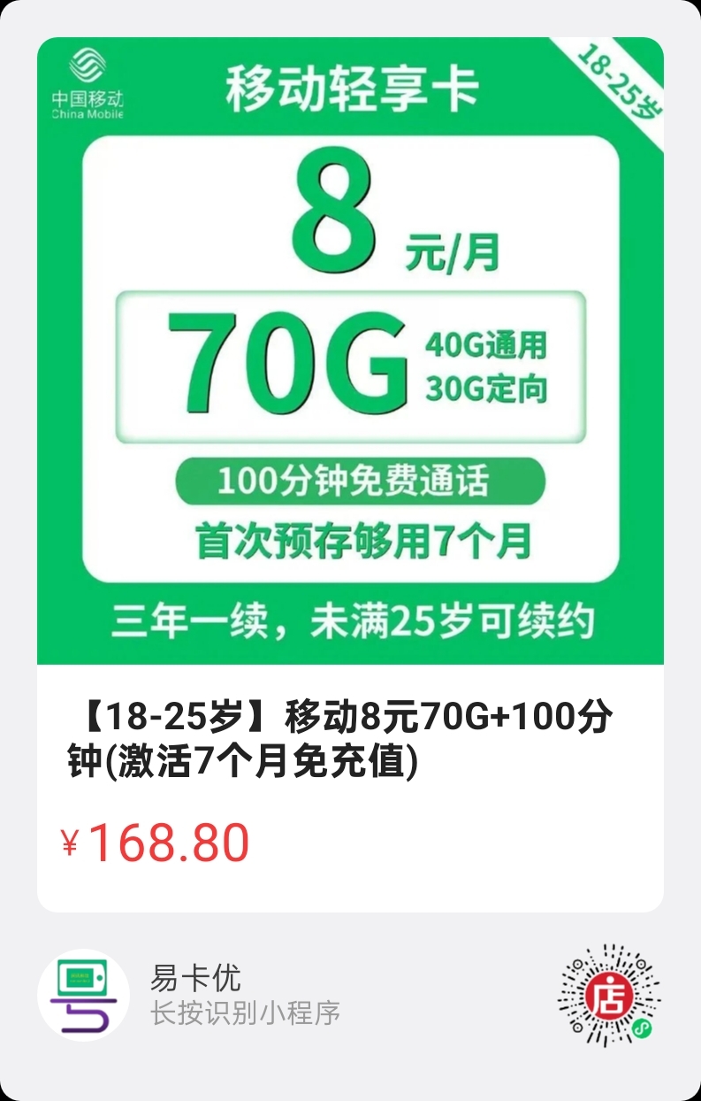 。 移动8元每月120G通用+30分钟 哪个链接?
